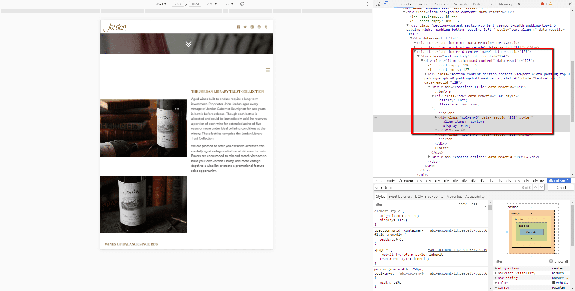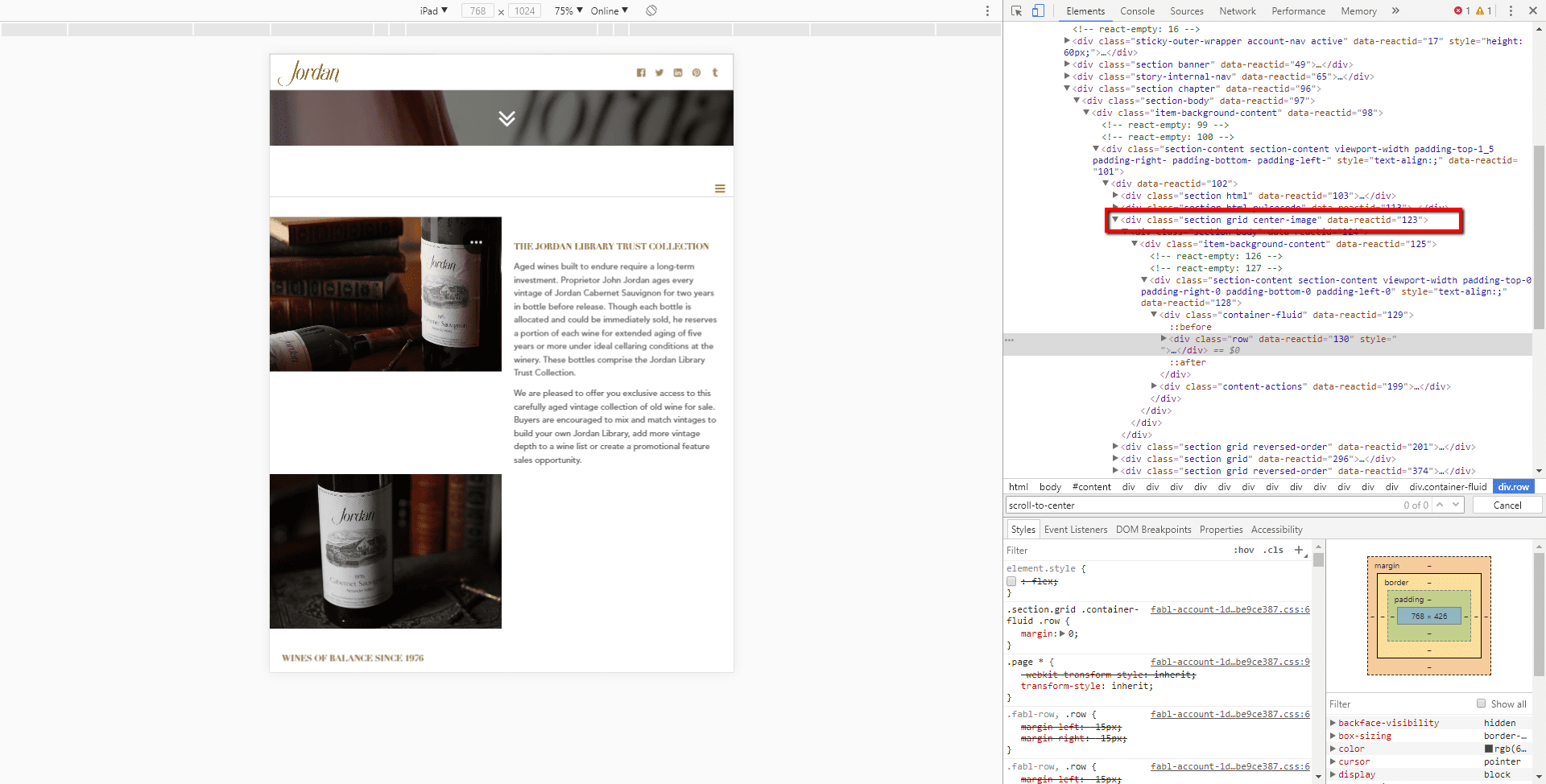".section.grid.center-image .row" and “.section.grid.center-image .row .col-sm-6”.